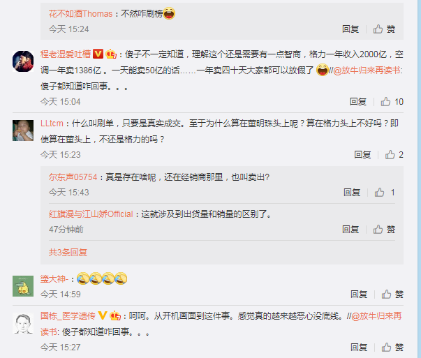 《炣燃科技》注意到,尽管董明珠否认,但由于65亿的数字太过离谱,加上涉嫌“造假”的行为被媒体踢爆,网民纷纷留言讽刺。