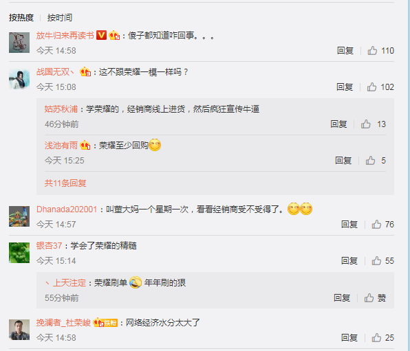 此外媒体还爆出,董明珠上次直播,国内各地不少格力经销商就收到了来自格力内部“业务员”的通知,将以前厂家渠道订货的方式改为通过直播下单。