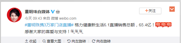 65亿元,这是董明珠直播带货一天的销售额。