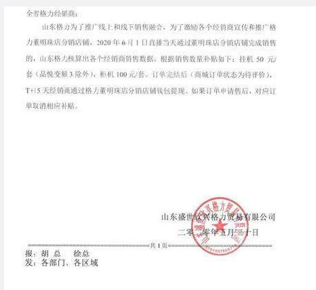 媒体甚至曝出,格力各地销售公司早在前2天就出台专门的补贴通知文件,对于商家在董明珠的店购买空调,每台桂机给予50元,柜机给予100元的额度补贴。