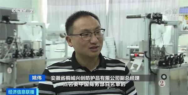 安徽省桐城兴创防护品有限公司副总经理姚伟:国外的一些客户点名要中国商务部白名单企业生产口罩,我们早在一个月之前,积极申办欧盟CE认证和国内商务部白名单。
