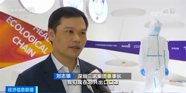 深圳三诺集团智慧健康事业部总经理薛俊峰:以前传统的口罩机日产量在5万到8万片左右,高速口罩机可以达到一天接近100万片。