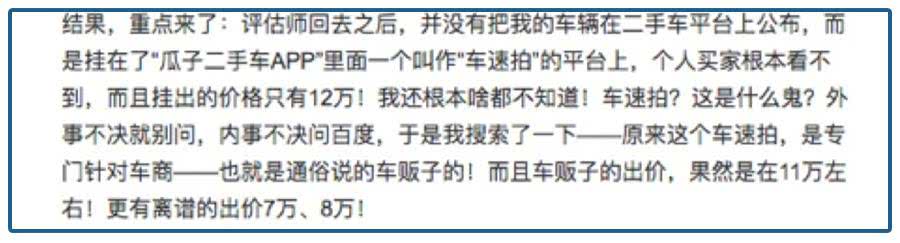 12万到10.5万再到9万,这个价格一路走低,套路玩得太好了,韩岳最终车也没卖给瓜子,而是以10.5万的价格卖给了一个二手车商,最终这车的买家成交价是13万。