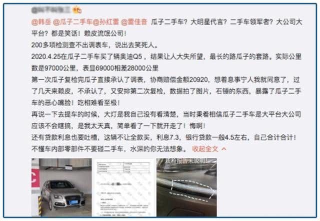 因为卖车,韩岳跟瓜子二手车“刚”上了。
