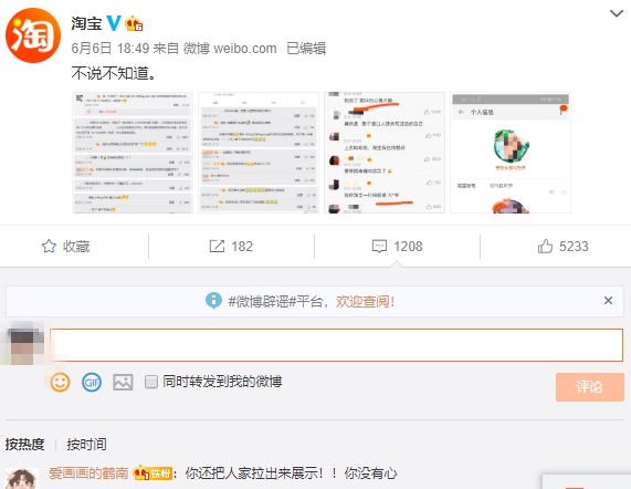 对于淘宝的这种行为,有网友表示,“你还把人家拉出来展示!!你没有心”,还有网友表示,“你好拽,我好爱”,还有网友表示,“你好傲娇哦”。