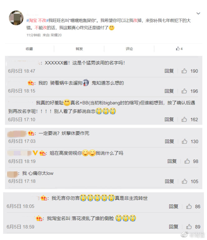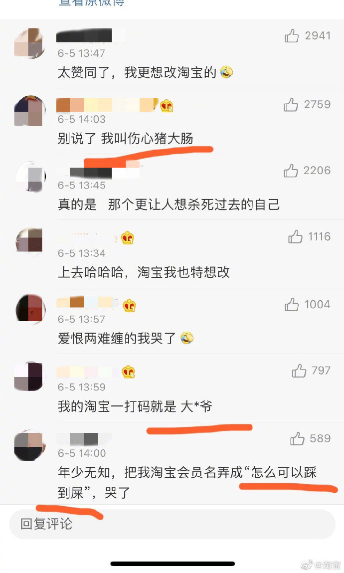 炣燃科技6月8日讯(刘菲)近日,腾讯微信官方公众号“微信派”宣布,Android用户更新到最新版本,支持修改微信号,iOS 版则仍需再等等。对此,有网友希望淘宝方面也可以支持淘宝会员名称更改,不过,事与愿违,淘宝不仅在其官方微博账号上硬核回应“不改”,还在6月6日晒出了一批网友的淘宝账号名称截图,并表示,“不说不知道”。