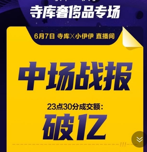 在此之前,快手官方发布中场战报,宣布小伊伊营业额破亿。直播显示,小伊伊知道后异常兴奋,团队成员纷纷送上鲜花庆祝!