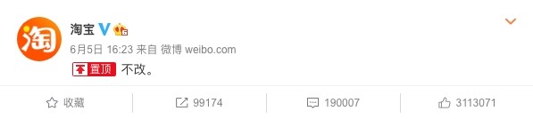 那么隔壁的淘宝呢?我们也可以告别「快递员是大傻a」、「高普路115号小霸王」的收货人名字了吧?亲亲,醒醒哦,人家淘宝就在微信官宣4小时后回应你们了:不改(还是微博置顶那种)。