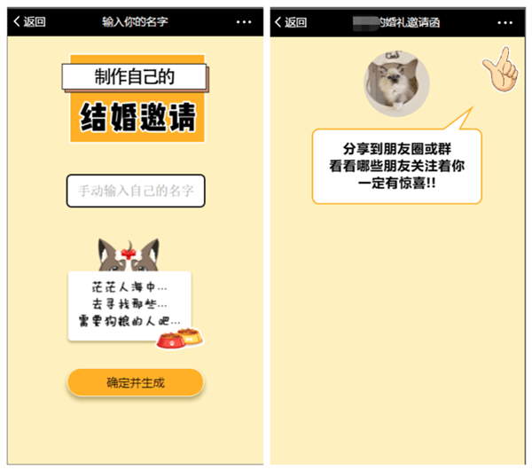 以游戏、测试等方式,吸引用户参与互动的,具体形式包括但不限于比手速、好友问答、性格测试,测试签、网页小游戏。