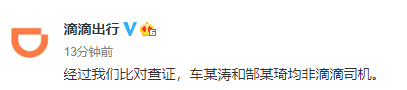 而滴滴表示,经过比对查证,这两人均非滴滴司机。