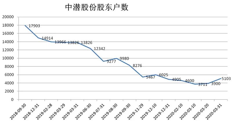 中潜股份2018年三季报股东户数17903户,今年3月10日公司公布的数据最低到3711户,不到一年半间缩水79%。