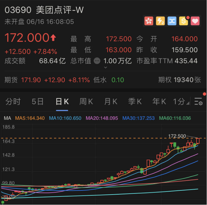6月16日,多家电商股,如阿里、美团、京东、腾讯、小米股价均出现上涨,其中在港股上市的美团市值也创历史新高,突破万亿港元。