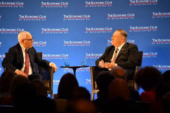 ▲蓬佩奥(右)在华盛顿出席经济团体会议(图片源自蓬佩奥推特)