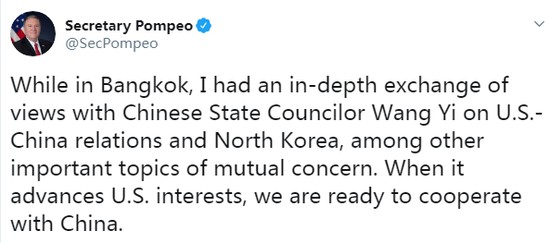 也正因此,当会谈后的蓬佩奥通过社交媒体大谈对华合作时,外媒都难免有些意外:蓬佩奥,对华策略要变?