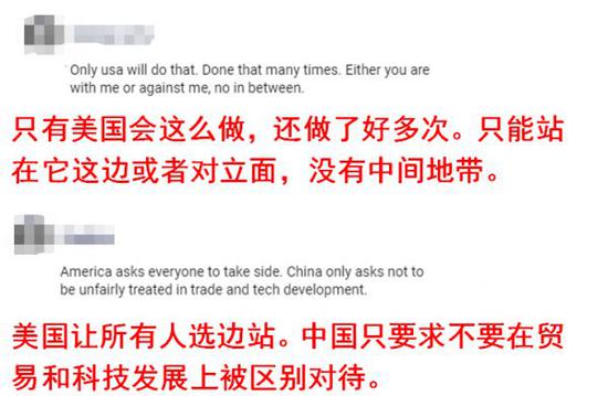 这一说辞,在不少外国网友看来相当“伪善”。有网友就犀利指出,美国向来愿意逼迫别国选边站队,“没有中间地带”。
