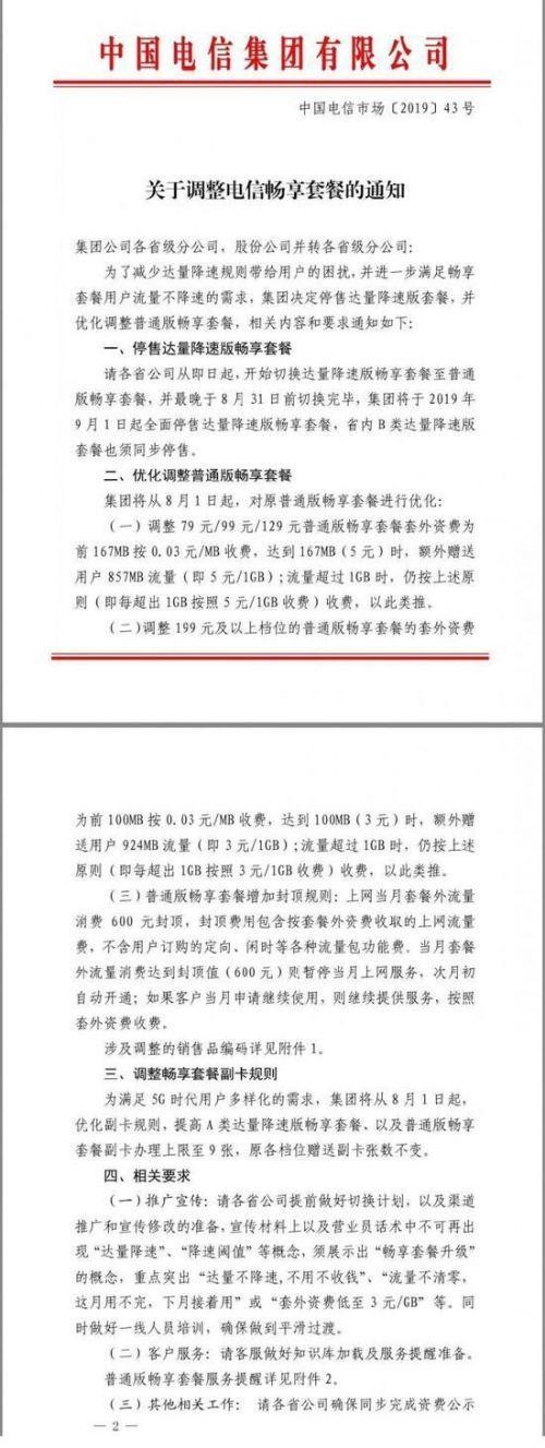 中国电信日前下发通知,称8月1日起将优化调整普通版畅享套餐,并从9月1日起,全面停售达量降速版畅享套餐,省内B类达量降速版套餐也须同步停售。