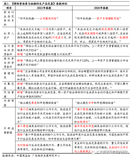 1、明确保险资金运用衍生品的目的,删除期限限制,具体期限根据衍生品种另行制定。