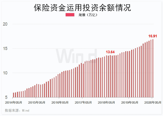 Wind数据统计显示,截至5月底,保险资金运用余额19.69万亿元,其中投资余额16.91万亿元,同比去年增幅高达16.88%。
