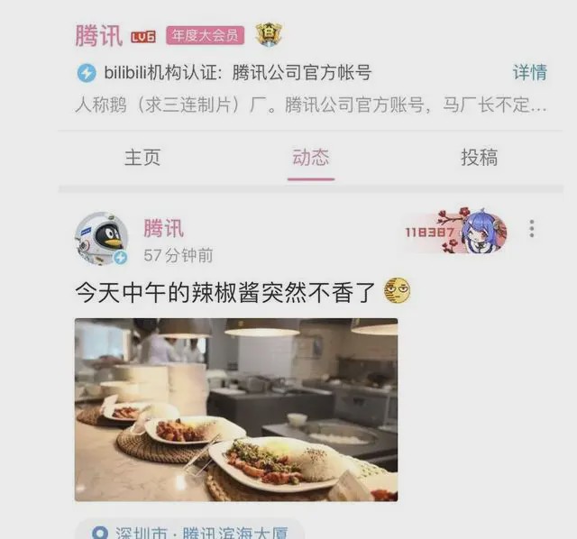 在贵阳警方发布通告后,腾讯公司的B站账号发布了新的状态:今天中午的辣椒酱突然不香了。