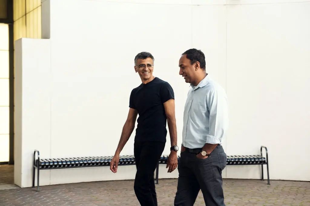 图注:拉马斯瓦米和联合创始人维韦克·拉古纳坦在Neeva加利福尼亚山景城办公室外。
