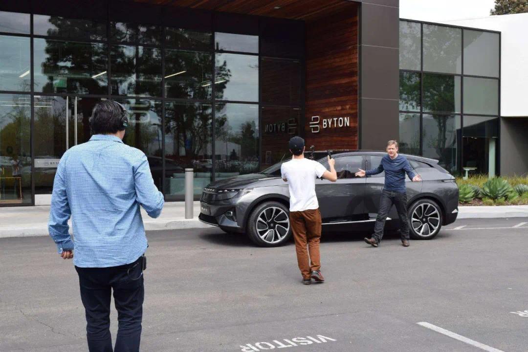 拜腾CTO David Twohig在北美办公室门口录制视频