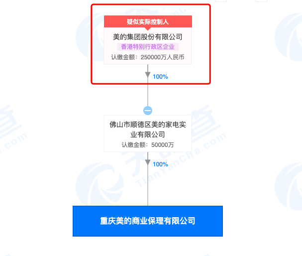 图注:重庆美的商业保理有限公司的股权穿透图(来源:天眼查)