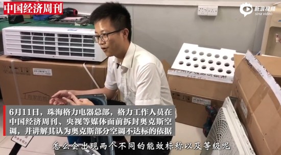 为了进一步验证举报内容的真实性,格力在发布举报信次日,就在珠海格力电器总部,当着一众媒体拆封了奥克斯空调,讲解了奥克斯部分空调不达标的依据。