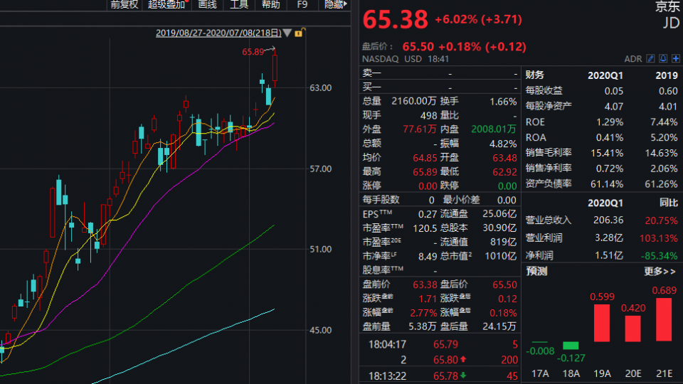 而另一家头部电商京东股价也继续刷新历史新高,昨夜,京东大涨6%,市值突破1000亿美元。