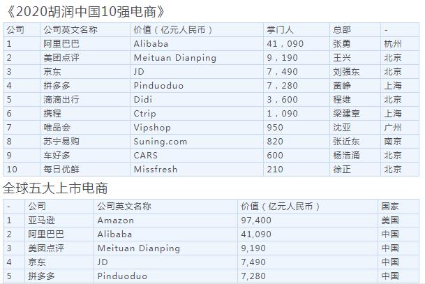 数据显示,美团最近五个月增长80%,京东增长一倍,拼多多增长1.5倍,分别以9,190亿、7,490亿和7,280亿元价值排名第二至第四。