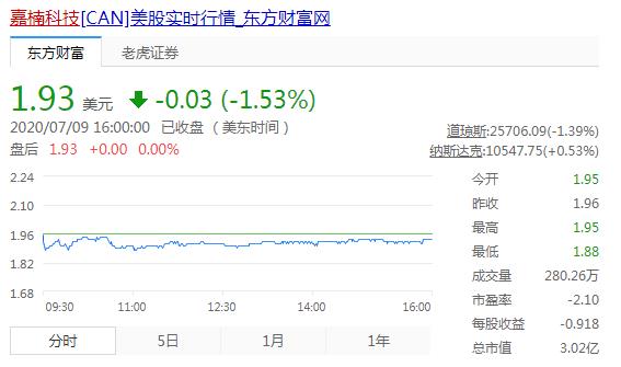作为全球第二大比特币矿机厂商,嘉楠科技近来可谓惨不忍睹。美东时间7月9日收盘,嘉楠科技下跌1.53%,股价破2美元,为1.93美元。