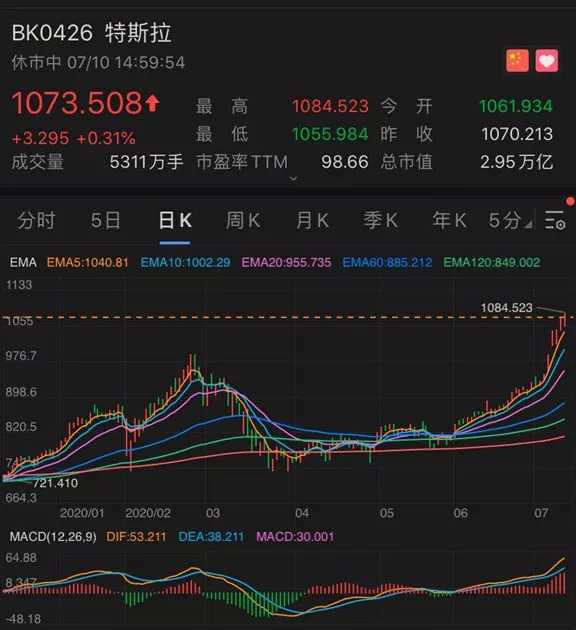 7月10日美股收盘,特斯拉大涨10.78%,市值突破2800亿美金(约合2万亿人民币),特斯拉CEO马斯克的资产一夜暴增61亿美金。