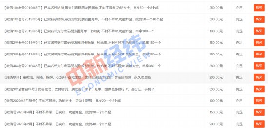 据卖家介绍,注册时间、是否实名、是否绑定银行卡、是否开通朋友圈、好友数量都是影响微信号价格的重要因素。