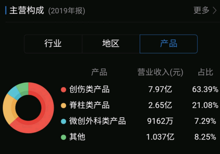 主营构成如下,可以看到创伤类产品占其营收的大部分: