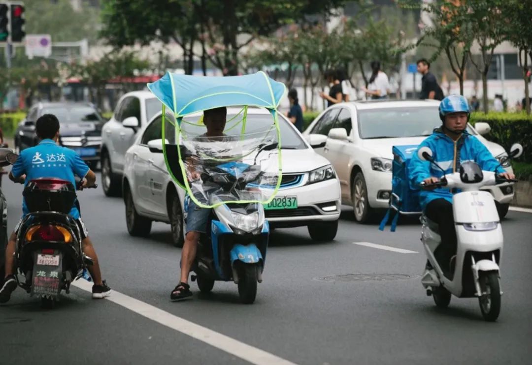 “五年前刚入职时,我是借钱买的二手电瓶车,现在家里已经买了四台电动车,就是为了跑单,还特意装的锂电池。”