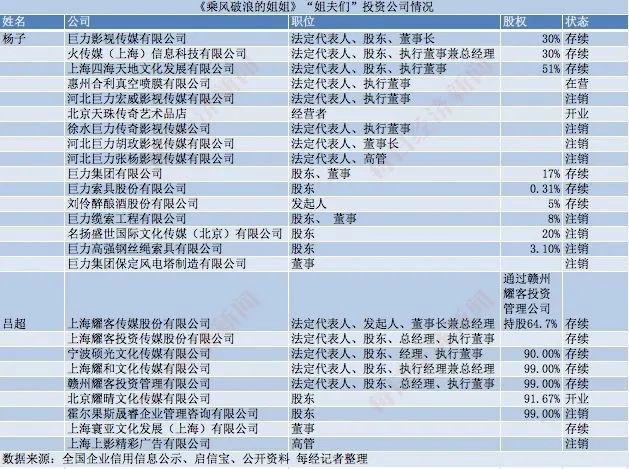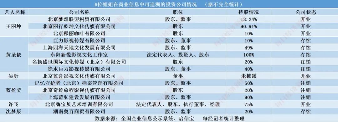 除了工商资料中可查的投资信息外,很多姐姐的投资未必有详细披露,但出道多年,她们的经历也相当丰富。