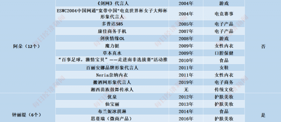 23位姐姐累计代言超160个