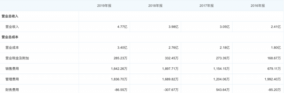 财务报表数据显示,营业成本一路走高,2016年到2019年间几乎翻倍,经计算,期间增速分别为21%,27%,23%,也呈波动态势。