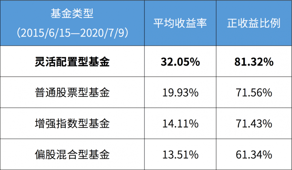 从2015年高点以来,截至7月10日,80%以上的灵活配置型基金取得正收益,平均收益率达32.05%。
