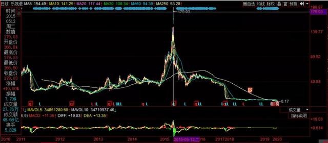 2、2015年5月12日,乐视网创下历史高点179.03元/股(除权价),如果以当天贵州茅台最高价275.2元/股算,乐视网股价是茅台的65%,相当于“大半瓶茅台”。