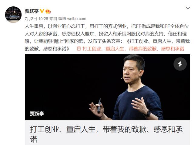今年7月2日,贾跃亭在微博发布公开信宣告破产,并提及将手中法拉第未来股权用于建立信托基金,个人不再持有法拉第未来股权,给普通股民的补偿占基金总额不到10%。
