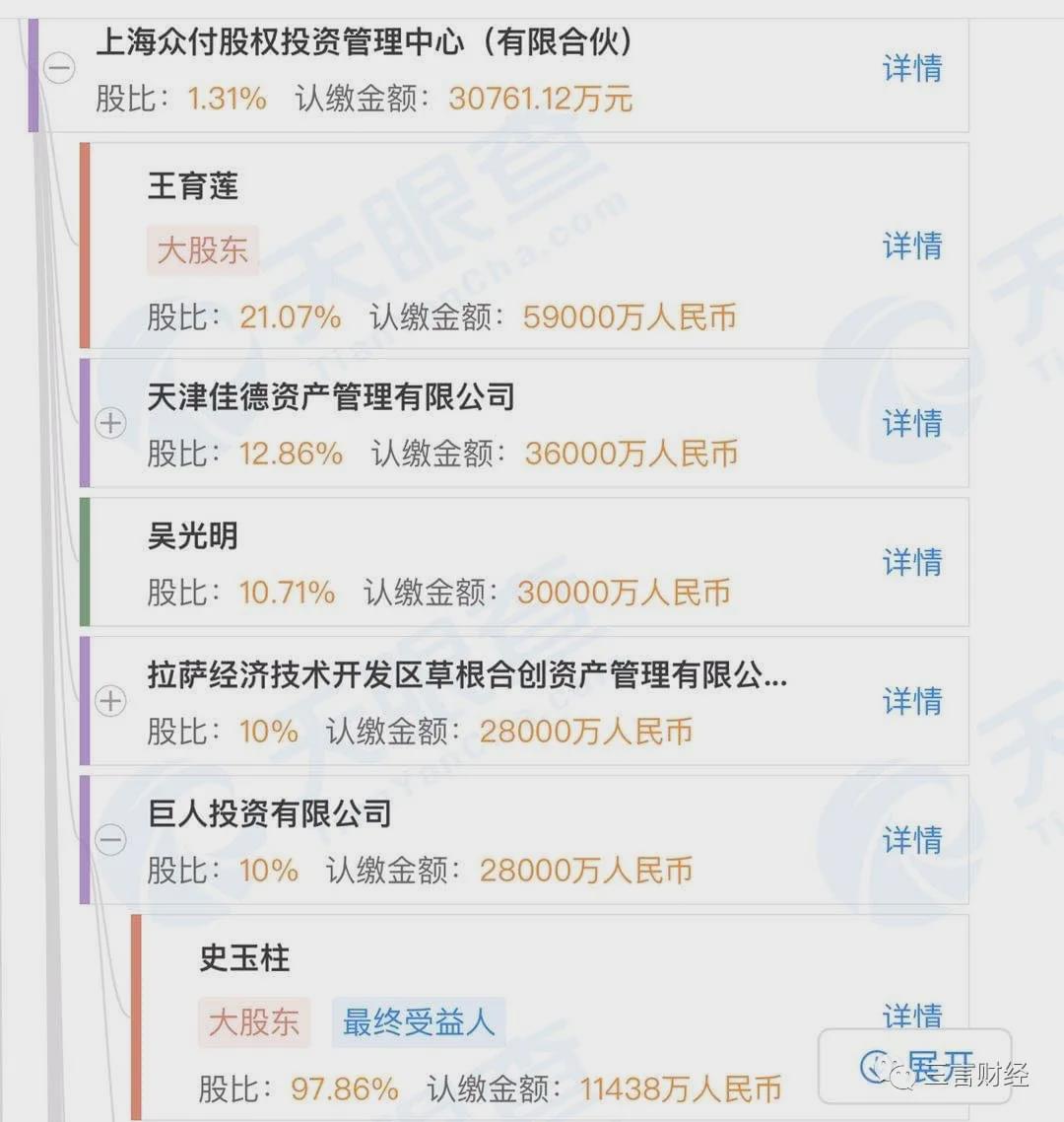 而巨人投资有限公司持上海众付股权投资管理中心10%股份,其大股东为史玉柱。