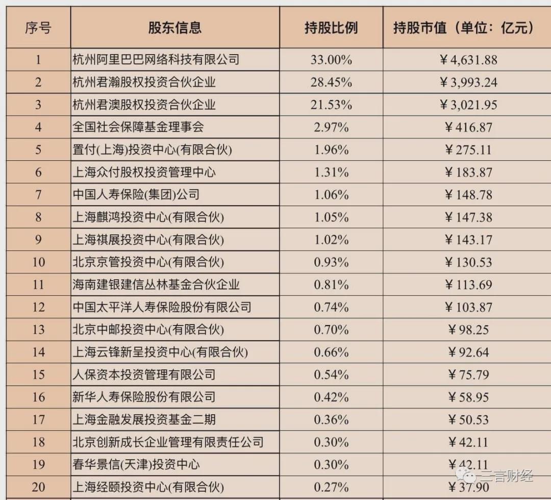 蚂蚁集团上市后,受益的还有间接持股的股东。