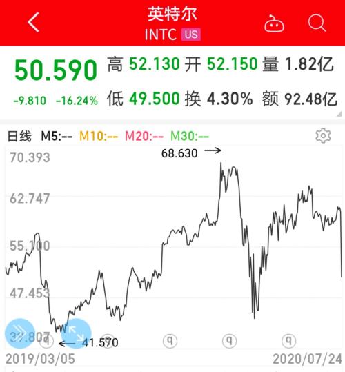 不过,英特尔同时表示其7nm芯片工艺进度较预期有所延迟,导致7nm的CPU产品的生产时间大约将向后偏移六个月时间。即使公司业绩超预期,但这一消息直接推动英特尔股价跳水,周五开盘瞬间暴跌超15%,截至最新收盘,跌16.24%,报50.59美元,创近四个月以来新低,公司市值一日蒸发415亿美元,跌至2140亿美元,排在在美上市半导体行业中第三位,在台积电和英伟达之后。英特尔股价年内累计下跌14.58%,是在美上市今年表现最差的半导体公司之一。台积电股价去年表现优异,市值超过英特尔,成为半导体行业市值最大公司。英伟达继去年涨76.94%后,今年再涨73.48%,市值于今日再次超过英特尔。