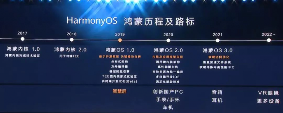 根据华为鸿蒙路线图,在应用第一代鸿蒙OS1.0的智慧屏之后,2020年鸿蒙OS将升级到2.0版本,内核、应用框架也实现了自研,应用场景将扩大到PC、手表、车机等。关于鸿蒙OS应用在