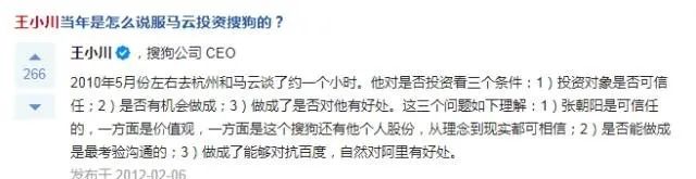 这是一次非常关键的见面,在搜狐和搜狗发展历史上都很重要。王小川本人也透露了当时是如何说服马云投资搜狗的。