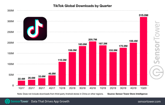 Sensor Tower的数据显示,截至今年4月底,抖音及其海外版的全球总下载量已经突破了20亿次。这个数值是什么概念——相当于每个美国人都下载了一遍,并且他们同时还拥有六台手机。