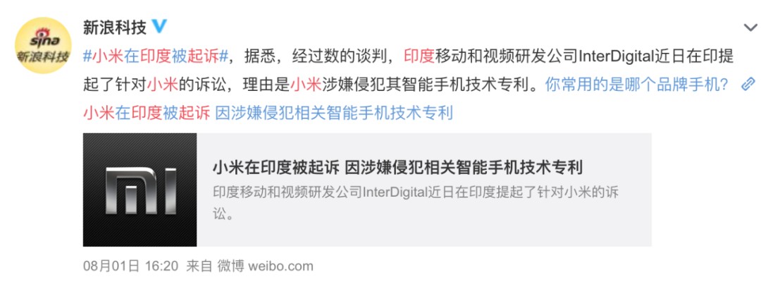 太过受喜爱的小米却在近日被印度移动和视频研发公司InterDigital起诉了。