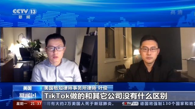 美国格知律师事务所的律师 叶俊:从个人隐私信息这一点来看,TikTok做的和其它公司没有什么区别,从这一点来说,美国总统并没有太多的法律基础,来禁止这个应用本身。