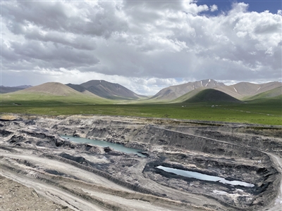 在兴青公司露天开采现场,放眼望去,“开膛破肚”式采挖形成的巨型凹陷采场,自东南向西北方向蜿蜒5公里,形成一条宽约1公里、深达300米到500米的沟壑,犹如在高原湿地上劈出的一道巨大伤口。开挖剥离出的地下冻土、岩石、煤矸石,在矿坑附近堆起四五十米高的渣山,掩埋了大片草地。