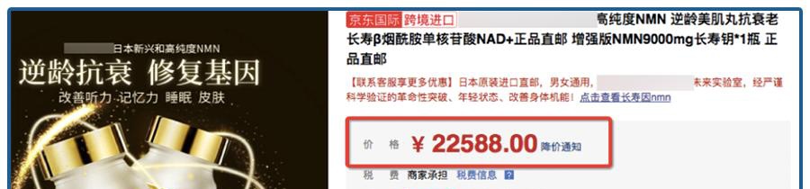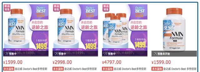 这家公司叫做金达威(002626.SZ),是做营养品和保健品的,在7月初,它在美国的子公司推出了一款含NMN可以让人“逆龄生长”的“长寿药”,并且在跨境电商上销售了。